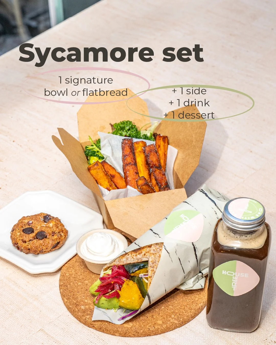 Salad bowls are served as ‘Half and half’, a mix of salads and 4-grain mix